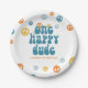 One Happy Dude, Groovy Retro Style Birthday party plates with yellow, orange and blue.