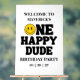 Welcome guests in style with our One Happy Dude Boy’s Retro 1st Birthday Welcome Sign! Designed with a bold black and white theme, playful details, and cheerful happy face graphics, this sign sets the perfect tone as guests arrive to celebrate your little dude’s big day. Perfect for entryways, door displays, or party backdrops, this welcome sign instantly ties your retro-themed décor together while creating a fun, photo-worthy moment. The classic black and white design adds a cool, modern feel with a nostalgic twist, ideal for a boy’s first birthday party. Let everyone know they’re about to celebrate one happy year as soon as they walk in, because your little guy is truly One Happy Dude!