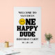 Retro One Happy Dude Smile Face Boy 1st Birthday Acrylic Sign