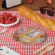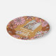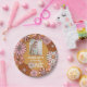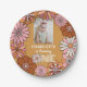 A fun orange and pink floral pattern gives these custom photo plates a retro boho vibe. Perfect for girls first birthday parties. Find matching party supplies in my shop.