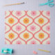 Retro Orange and Pink flowers on Ogee Pattern Tissue Paper