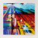 Retro Orange and Yellow Reflective City Streets Jigsaw Puzzle