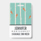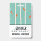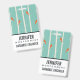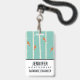 A badge with an illustration of birch trees with orange birds sitting on their branches. Retro green coloured background. Personalise with your name and profession.