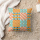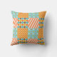 Retro Orange Blue Mustard Yellow Patchwork Pattern Cushion