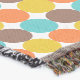 Retro inspired patchwork pattern featuring smaller patterns like chevron, stripes and polka dots. In this design you can also see colours like orange, aqua blue, mustard yellow, brown and white.