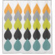 Retro inspired tones of chartreuse yellow, orange, aqua blue - green and grey bring bold, modern spirit to a simple geometric raindrop design.