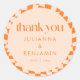 Retro Orange Check Custom Wedding Thank You Classic Round Sticker