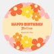 Retro Orange Colourful Boho Flower Happy Birthday Classic Round Sticker