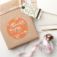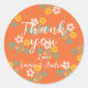Retro Orange Daisy Bouquet Pattern Thank You Classic Round Sticker. Modern, cute and trendy retro flowers pattern by Dreaming Cocoon. It is very cheerful and playful with a summer vibe look. Personalise the sticker with your names. You may customise the text 1 - Thank you and the text 2 - Love, with your own words. And text 3 - change with your names. This pretty floral thank you sticker is a perfect idea for a party favour, personalised gift/parcel and an envelop seal.