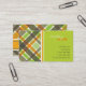 Retro Orange Green Checks Plaid Pattern Modern Business Card