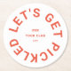 Retro Orange Let's Get Pickled Crest, pickleball round paper coasters. Personalise with the year, pickleball club and city. Perfect for a pickleball party, for a local pickleball club or for a pickleball themed bachelor, bachelorette or birthday party. Designed to match our Après Pickleball / Lets' Get Pickled Collection.
