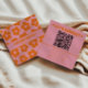 Retro Orange Pink QR Code Groovy Floral Trendy Fun Square Business Card
