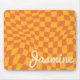 Retro Orange Warped Chequered Board Custom Name Mouse Pad