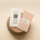 Retro Orange Wavy Chequered Trendy Boho QR Code Business Card