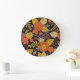 This wall clock features retro colours including shades of yellow, orange, brown, and navy blue. It's almost like being back in the 1970s.
