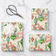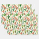 This vibrant wrapping paper showcases a retro-inspired Christmas design on a light, speckled background that suggests a vintage paper texture.