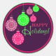 A grouping of ornaments in pink, purple and lime decorate this holiday greeting sticker in retro style! Use with our matching Holiday Party Invitations or address labels for a great coordinated look!