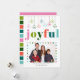 This Christmas photo Holiday Card showcases retro ball ornaments and vibrant typography with the word 'Joyful' in multiple colours. The card includes your picture, surrounded by colourful circles, for a unique and special touch. It's ideal for sending holiday greetings to your loved ones, and its joyful message will be remembered long after Christmas. The back of the card features colourful stripes.