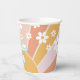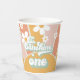 Retro Our Little Sunshine is One birthday paper cups with boho daisies.