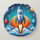 Retro, outer space rocket round cushion