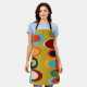 This apron has a mid-century modern design of half ovals in a retro colour palette. Colourful, bold, fun!