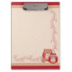 The clipboard features several cheerful owls in retro warm colours among floral vines.