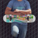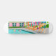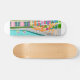 This Retro Palm Springs Hotel skateboard is as fabulous as it is kitschy. Its garishly bright rainbow facade is dwarfed by the lime green mountains and spectacularly iconic palm trees. There's a party going on by the pool with bathing beauties and muscle men soaking up some vitamin D while watching the synchronised swimmers perform. It appears that only one of the swimmers knows the routine; the other four are out of sync. How embarrassing for them! The only thing that would make this design say “Palm Springs” more would be if it was written in the clouds. Oh, wait. It is!
