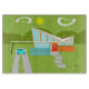 This Retro Palm Springs House with Car Decorative Glass Cutting Board is a mid century modern lover’s dream. The minimalist art design features a sleek orange and glass house with a dramatically sloping checkmark shape roof. The red door offsets the orange stone planter filled with greenery and the decorative turquoise cinderblock privacy screen. Staggered concrete blocks form the perfect walkway through the lush, green lawn. A white carport offers shelter to a turquoise and white classic 1950’s car with fins. The car is perfect for driving around the green, rounded mountains in the distance. The kitschy 1960’s style house looks like a shady oasis from the hot, Palm Springs sun.