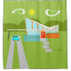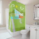 This Retro Palm Springs House with Car Shower Curtain is a mid century modern lover’s dream. The minimalist art design features a sleek orange and glass house with a dramatically sloping checkmark shape roof. The red door offsets the orange stone planter filled with greenery and the decorative turquoise cinderblock privacy screen. Staggered concrete blocks form the perfect walkway through the lush, green lawn. A white carport offers shelter to a turquoise and white classic 1950’s car with fins. The car is perfect for driving around the green, rounded mountains in the distance. The kitschy 1960’s style house looks like a shady oasis from the hot, Palm Springs sun.