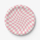Retro Pastel Baby Pink Checks Warped Chequerboard Paper Plate