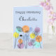 Retro style birthday card, line drawing flowers on a pastel background with circles in retro pastel colours.