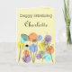 Retro style birthday card, line drawing flowers on a pastel background with circles in retro pastel colours.