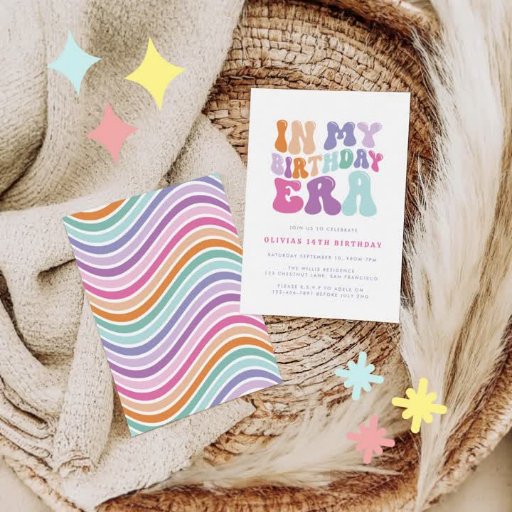 Retro pastel colourful modern minimal funky birthday era favour decor sticker design.