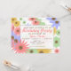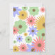 A birthday party invitation featuring a background of retro inspired flowers in various pastel shades of pink, purple, orange, and green. Personalise the text over sheer centre section on front with details of your occasion.