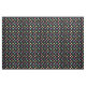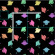 Fun graduation fabric with a pattern of pastel-coloured graduation caps against a black background.