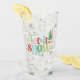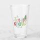 This playful drinking glass features the saying "let it snow" with alternating colours on lowercase letters with sparkle accents. Colours include pink, red, green and light blue.