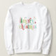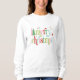 This playful sweatshirt features the saying "merry christmas" with alternating colours on lowercase letters with sparkle accents. Colours include pink, red, green and light blue.