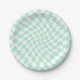 Retro Pastel Mint Green Checks Warped Chequerboard Paper Plate
