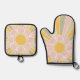 Retro Pastel Sunshine Personalized Kitchen Oven Mitt & Pot Holder Set