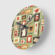 Retro pattern with kitchen dishes for breakfast round clock