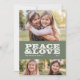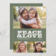 Peace and love. This three-photo holiday card features a retro styled greeting but always relevant message of peace and love. The muted red colour scheme, distressed texture on the back and rounded corners give it even more of a vintage feel.
