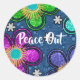 Retro Peace Out Hippie Style Flower Power Pattern Classic Round Sticker