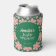 This baby shower can cooler features a cheerful pink floral pattern with a bold green center and soft cream typography for a playful, modern look. Personalize the name and date to create coordinating drink favors your guests will actually use and love. Perfect for baby showers, sprinkles, or casual backyard celebrations, it adds a fun pop of color to party tables. A stylish and practical detail for girl or floral-themed baby showers.