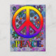 Retro Peace Sign Text & Flowers Postcard