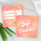 Modern groovy gift voucher design with retro fonts, pastel peach and pink hues and space for your logo and business details. The perfect gift card design for makeup artists, nail techs, hairdressers, cosmetologists, and more!
