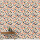 This artwork features a playful and abstract pattern composed of irregular, pebble-like shapes scattered across a cream background. The design uses a warm, retro-inspired colour palette of deep navy, burnt orange, and mustard yellow. The shapes vary in size and orientation, creating a dynamic and spontaneous arrangement that evokes a sense of movement and energy. The simplicity of the forms, combined with the bold colours, gives the pattern a mid-century modern feel, reminiscent of vintage textiles and design.