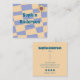 Bring a splash of retro charm to your professional identity with this periwinkle and peach chequerboard business card. Featuring bold typography, a cheerful daisy icon, and a soft yet playful colour palette, this design is ideal for creatives, influencers, entrepreneurs, or small business owners. Personalise it with your name, title, contact info, and social media handles to make networking effortless and stylish.