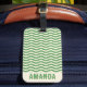Retro Personalized Abstract Wavy Lines Green Luggage Tag