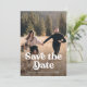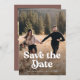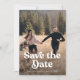 This is a bohemian wedding save the date card using a retro vintage style font along with a modern and simple photo design.
