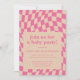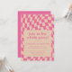 Celebrate in style with this retro-inspired baby shower invitation featuring a trendy wavy chequered pattern in pink. With customisable text and a vibrant colour palette, this modern yet playful design sets the perfect tone for a fun and memorable celebration. Personalise the details to make it uniquely yours!